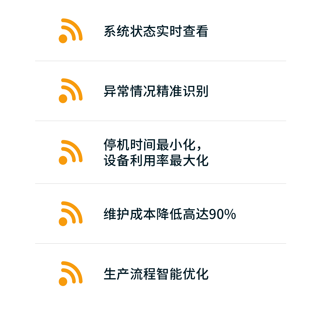 免维护、可改装的解决方案可实现智能实时状态监测,并减少停机时间和不必要的维护成本 – 无论行业或工厂规模如何。得益于获得专利的无线技术和能源自给自足的传感器技术,您的机器始终可供使用且高效。
